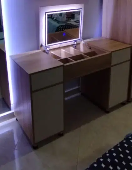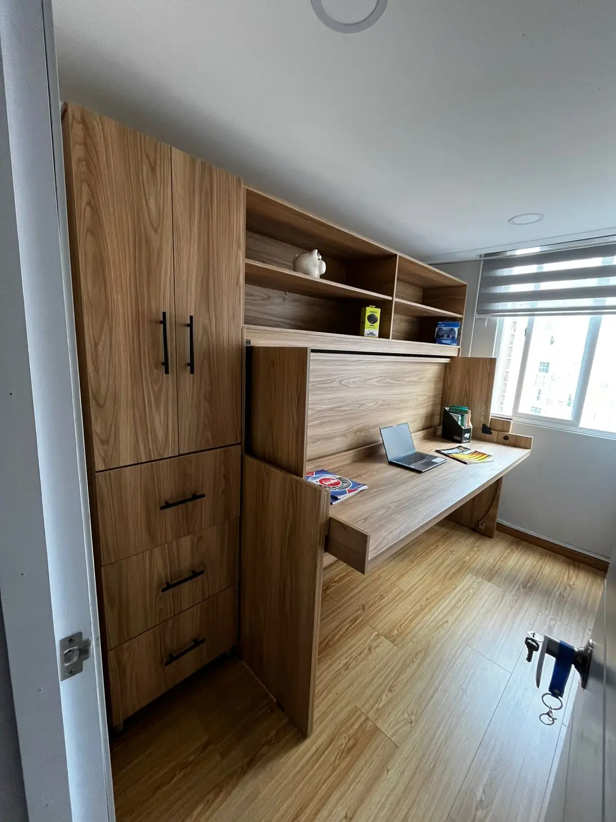 Verás camas abatibles, tocadores, escritorios, cocinas, closets y mucho más, todos hechos en madera de alta calidad.